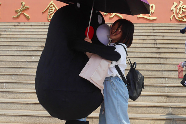柠檬树青年志愿者协会的志愿者身穿玩偶“熊本熊”服装,将可爱的动漫角色展现在同学们面前,为美丽的校园增加一份活力与温暖。过往的同学被这有趣的场景吸引,纷纷与玩偶拥抱合影留念,缓解心中压力,为忙碌繁杂的生活增添一份快乐。合影完毕,同学们填写了一份心理测试问卷,志愿者们以一份热情和爱心,以及对调查结果严格保密的态度,帮助同学们分析问卷结果,并提供分析建议。让被调查者对自己的心理健康状况有正确的认识,同时提高了自我调适能力。
