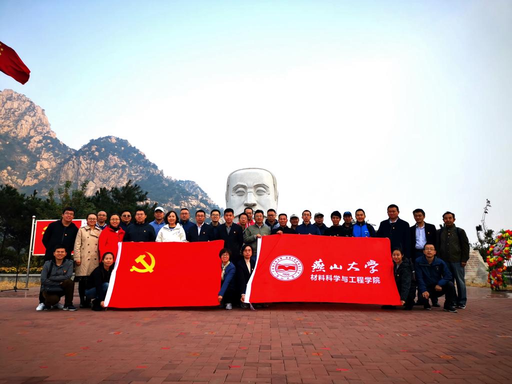 为全面贯彻落实党的十九大精神,坚持以习近平新时代中国特色社会主义思想为指导,推动学院“不忘初心,牢记使命”主题教育顺利开展,2019年10月19日,材料学院党委组织全院教工党员赴昌黎五峰山李大钊革命活动旧址接受理想信念和党性教育。