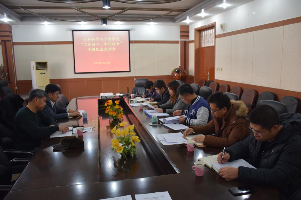 根据学校党委统一部署和专题民主生活会工作安排,12月9日下午,材料学院党委在材料馆A325召开“不忘初心、牢记使命”主题教育专题民主生活会。校长赵丁选、校指导组组长张明及材料学院领导班子成员出席了会议。会议由学院党委书记李曦达主持。