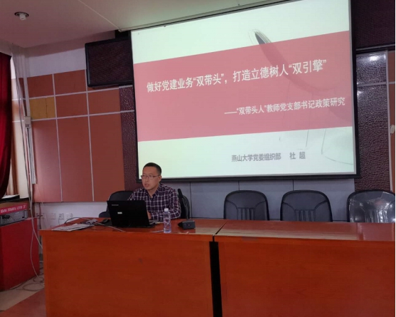 本次培训邀请了学校党委组织部副处级专职组织员杜超老师,为全体成员做了题为《做好党建业务双带头,打造立德树人双引擎——双带头人教师党支部书记政策研究》的专题讲座。