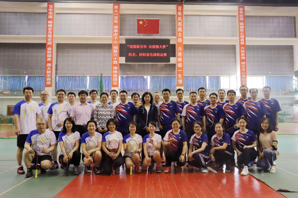 和机关羽毛球联谊赛在体育馆隆重举行。来自双方共40余名选手参加比赛,校工会主席丁华、机关党委书记左莉、材料学院院长王利民、机关工会主席张立臣、材料学院工会主席王亦晨等领导参加活动并和全体队员集体合影留念。