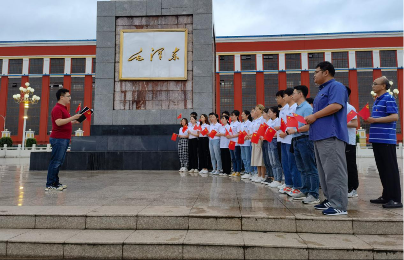 胸怀千秋伟业,恰是百年风华。7月1日下午17时,骤雨初歇,在中国一重广场毛主席雕像处拉开序幕,活动由学生党员姚之绚主持。与会学生党员统一身着一帆视频