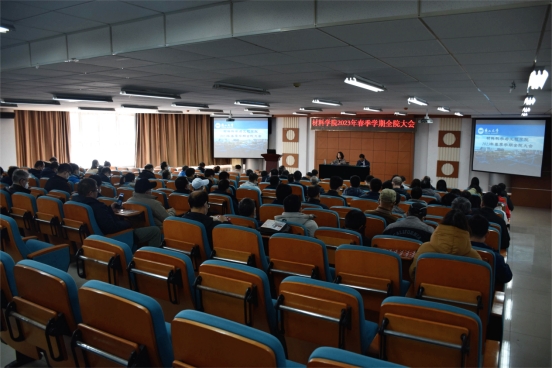 副院长张新宇对学院2022年重点工作及取得成果进行了总结,具体包括党建工作、学科建设与科学研究、师资队伍、专业建设、国际化建设、学生工作、工会工作、疫情防控工作几个方面,并对2023年重点工作任务进行安排部署。他希望全体教师全身心投入到学院新一轮发展建设实践中,在学校“双一流”建设征途上再立新功。