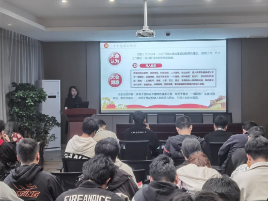 李曦达书记强调《中国共产党章程》是党的总章程,是党的根本大法,集中体现了党的理论和路线方针政策,规定了党的重要制度,对推进党的事业、加强党的建设具有重要指导作用。随后,就二十大对党章的修正和党章发展的历史进程两个方面进行了展开阐述。介绍了把党的十九大以来习近平新时代中国特色社会主义思想新发展写入党章,更好的反映了以习近平同志为核心的党中央推进党的理论创新、实践创新、制度创新成果;把党的初心使命、党的百年奋斗重大成就和历史经验内容以及发扬斗争精神、增强斗争本领的内容写入党章,激励了全党坚定历史自信、增强历史主动,坚守初心使命、传承红色基因,把握新的伟大斗争的历史特点等其他方面对党章的修正。