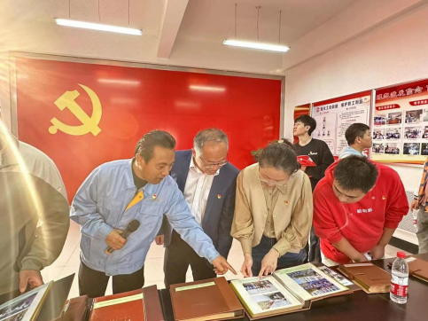 (图4 师生共同参观党员活动室)