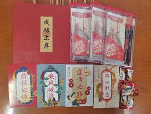 材料学院党委副书记王亦晨表示,送上考研礼物就是送上全院师生对考研学子最深情的祝福,必须让学生们实实在在感受到学院的关爱和温暖。学院领导班子成员、各专业系主任、辅导员和低年级同学们历时半个月精心策划、挑选购置,为150位考研学子写下专属祝福,寄语考研学子能在最后关键时刻沉着应考、稳扎稳打、坚持到底,用最佳的状态与最好的心态成就最好的自己。