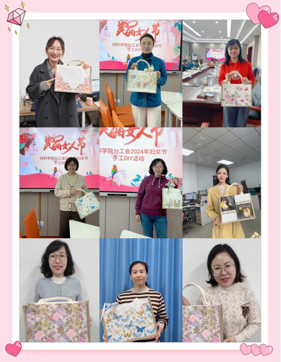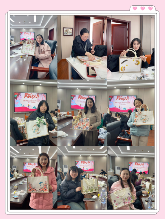 为了庆祝三八国际妇女节到来,丰富学院、国重女教工的业余生活,展示她们健康乐观向上的精神风貌,构建和谐共进的工作氛围,学院分工会于3月8日上午,在里仁行政楼102会议室精心组织了一场别开生面的帆布包手工DIY活动。