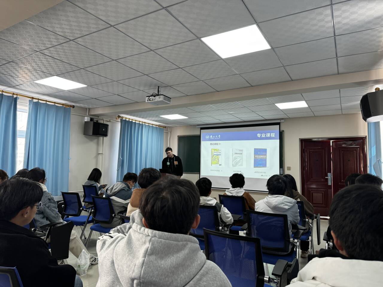 于3月30日下午在西校区十组团“一站式”学生社区工作站开展“朋辈助励·引领成材”系列讲座第四期之大四学长学姐讲专业活动。讲座特别邀请了2020级免试推研学生宁榴莲、庞世新、李根、刘佳伟四名同学作为主讲嘉宾,2023级本科生通过线上报名的方式作为听众参与了本次讲座,讲座由辅导员范学美老师主持。