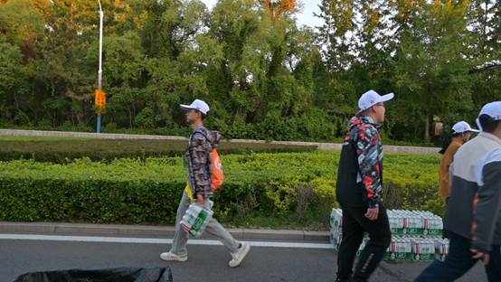 到达补给地点后,志愿者们各司其职,快速投入志愿服务准备中,将温暖和关怀化为支持运动员的力量,为国内外的一万七千余名选手提供坚实保障。