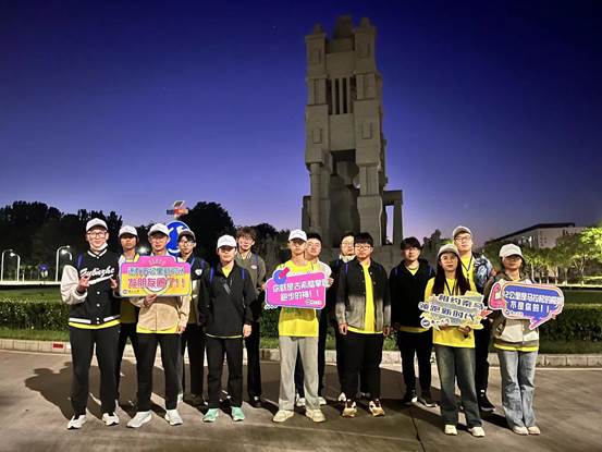 凌晨3:50点,我院志愿者在7号门附近水压机前集合完毕,在第一旅太阳升起前整装出发。