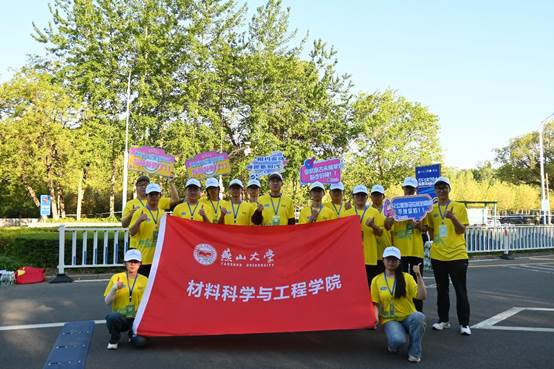 (图为材料学院全体志愿者在10 km服务点处合影)