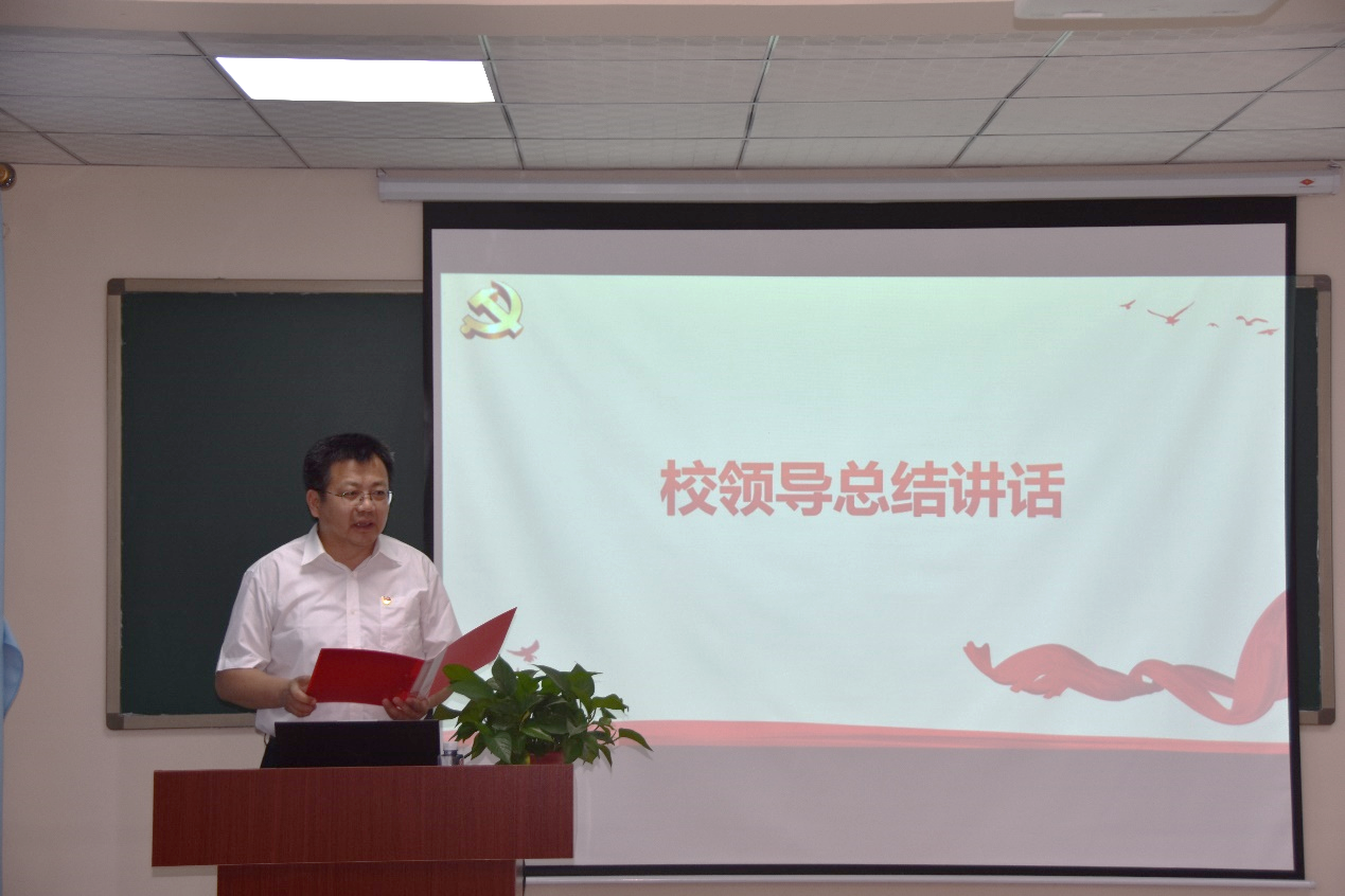 蔡星周最后总结讲话,对选拔组建社区“功能型党小组”给予肯定,指出“功能型党小组”是构建“学校党委—学生社区党工委—功能型党支部”条块结合、纵横交互的网格组织体系的又一有力抓手,是对学校学生党建工作主渠道的拓展、延伸和补充。向即将“出征”的各位学生党员提出殷切期望:一是弘扬伟大建党精神,赓续党的红色血脉。永远把伟大建党精神继承下去,发扬光大,艰苦奋斗;二要铭记燕大精神,熔铸燕大人的奋斗基因。虽然路途经历坎坷,但始终初心不改,追求卓越;三是弘扬科学家精神,锤炼科技报国本领。以“科技强国”为己任,以“学生社区功能型党支部”为平台,在攻坚克难中追逐梦想,在核心技术科研攻坚中“挑大梁、当主角”。最后,蔡星周鼓励材料学子作为大国青年,要以“以至诚之心报国、以攻坚之心干事”,期待大家做新时代大有可为的新青年!