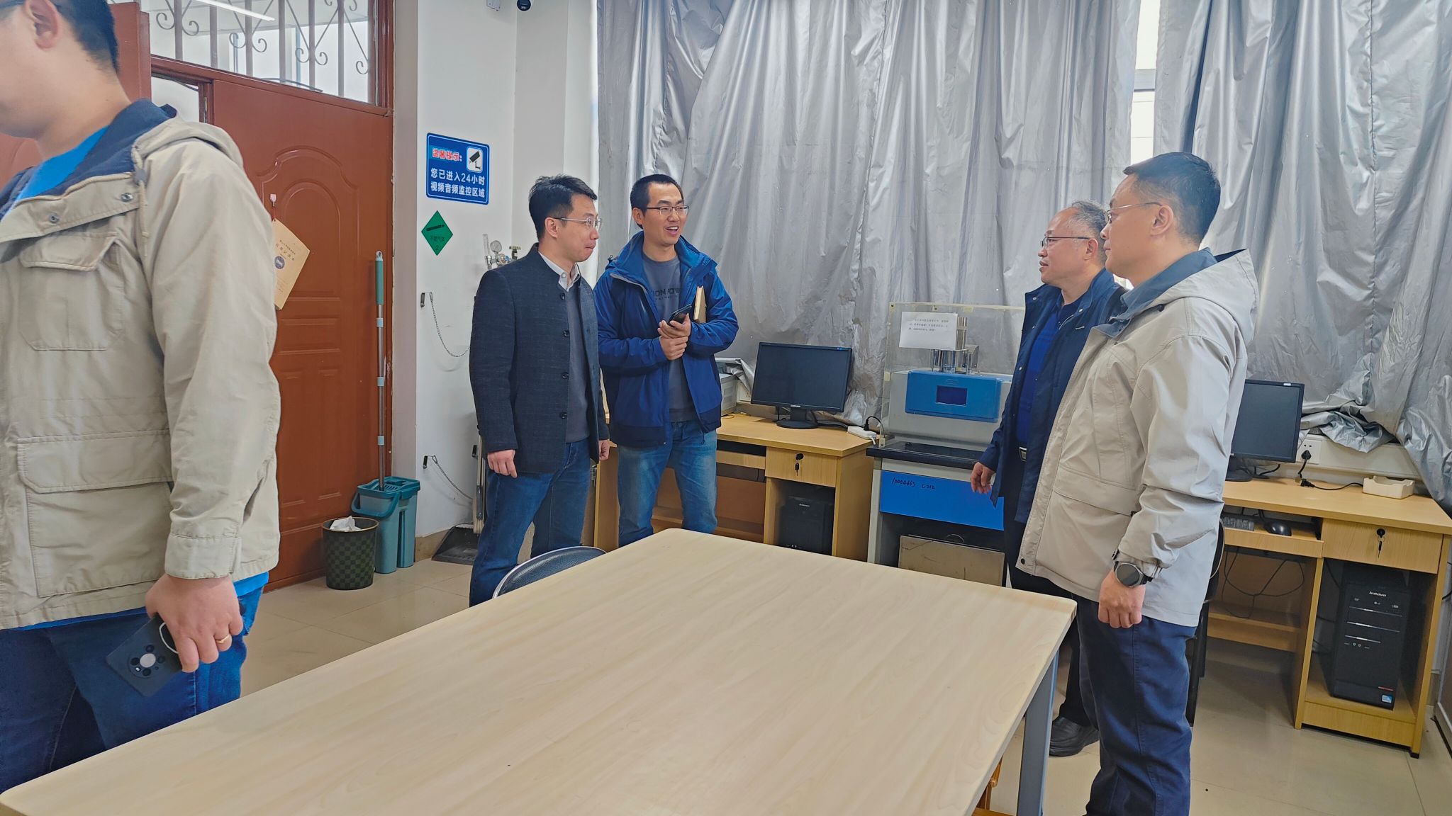 党委书记王国伟,教学院长梁永日、实验室主任乔琪联合材料学院各系主任前往材料馆C楼进行专业实验室检查。