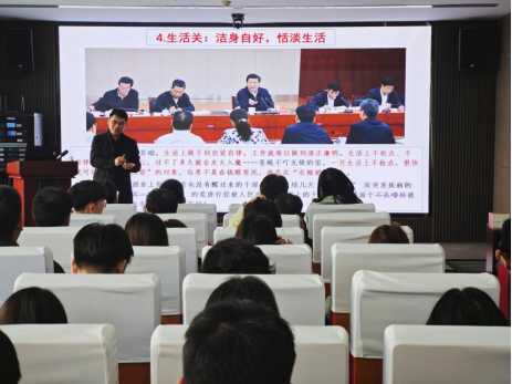 杨新宾以家风为切入点,详细讲述了家风的重要性、如何涵养清廉家风,并结合案例进行了详细讲述。围绕“家风、党风、政风”的密切关系,强调每一个共产党员都应该把好“信仰关、权力观、亲情关、生活关、纪律关”。最后,杨新宾以“修身先修德、立业先立志、为官先为人、治党先治家”为结语,激励大家要自觉坚定理想信念、加强道德品行教育,以优良家风培塑廉洁党风、清朗政风。