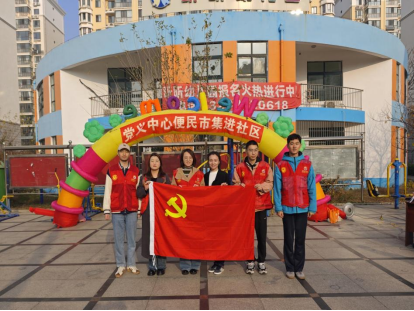亚稳材料国家重点实验室研究生第二党支部党员在支部副书记王妍的带领下,来到开发区自然家园小区,与联建活动党支部秦皇岛经济技术开发区自然家园社区党委共同开展“弘扬沈汝波精神,共建美好家园”便民集市志愿服务。