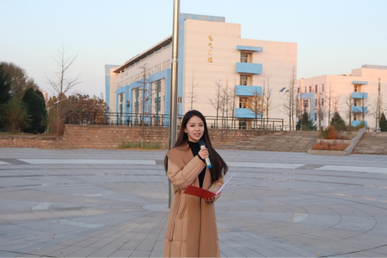 材料类5班班长张博文进行了主题为《在国旗下成长,让青春在母校绽放光芒》的演讲。带领大家回顾了“新中国成立75周年”的光辉历程,号召大家珍惜在校时光,勤奋学习,不断提升个人能力。重温了“厚德、博学、求是”的校训精神,鼓励大家以校训为指引,在学院这片热土上书写属于自己的精彩篇章,为母校增光添彩,为国家的繁荣发展贡献力量。