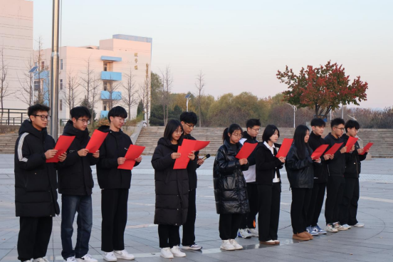 在西区广场举行了升旗仪式暨“我们有话说”活动。本科生辅导员姜明金、2024级全体本科生共同参与了本次活动,活动由材料类7班班长于默涵主持。