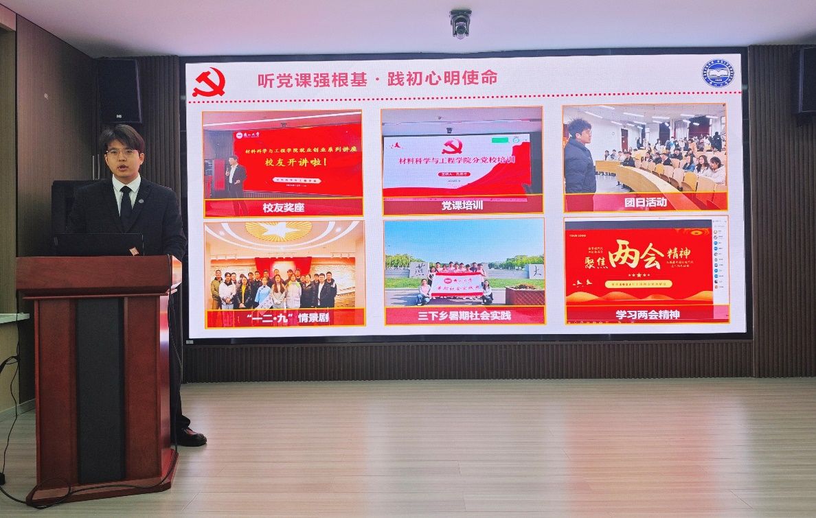 分党校在材料学院新楼113会议室开展研究生入党积极分子风采展示。学院研究生辅导员冯晶、王妍、范学美以及各研究生党支部的24名学生党员参加会议并担任评委,会议由王妍主持。