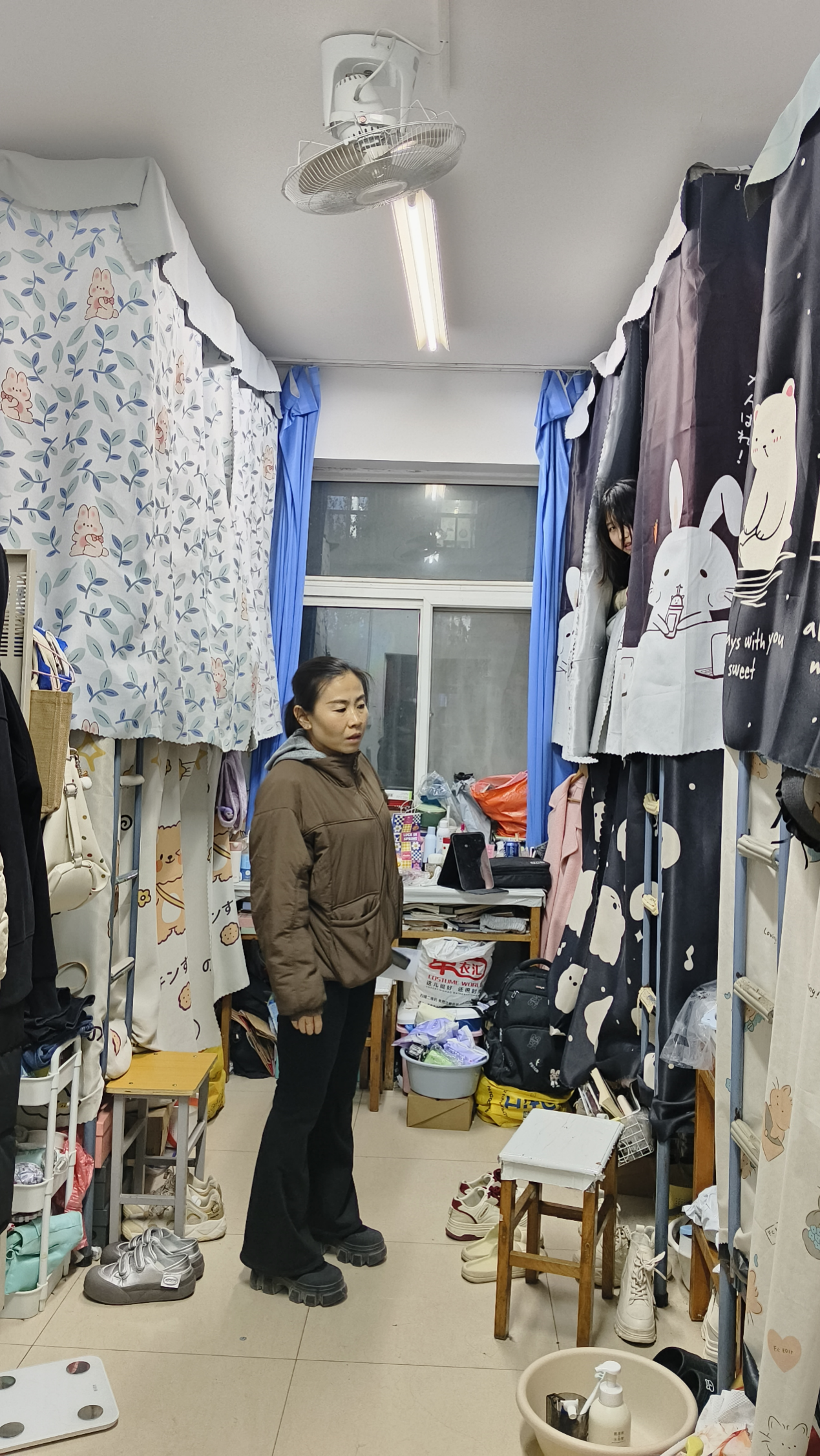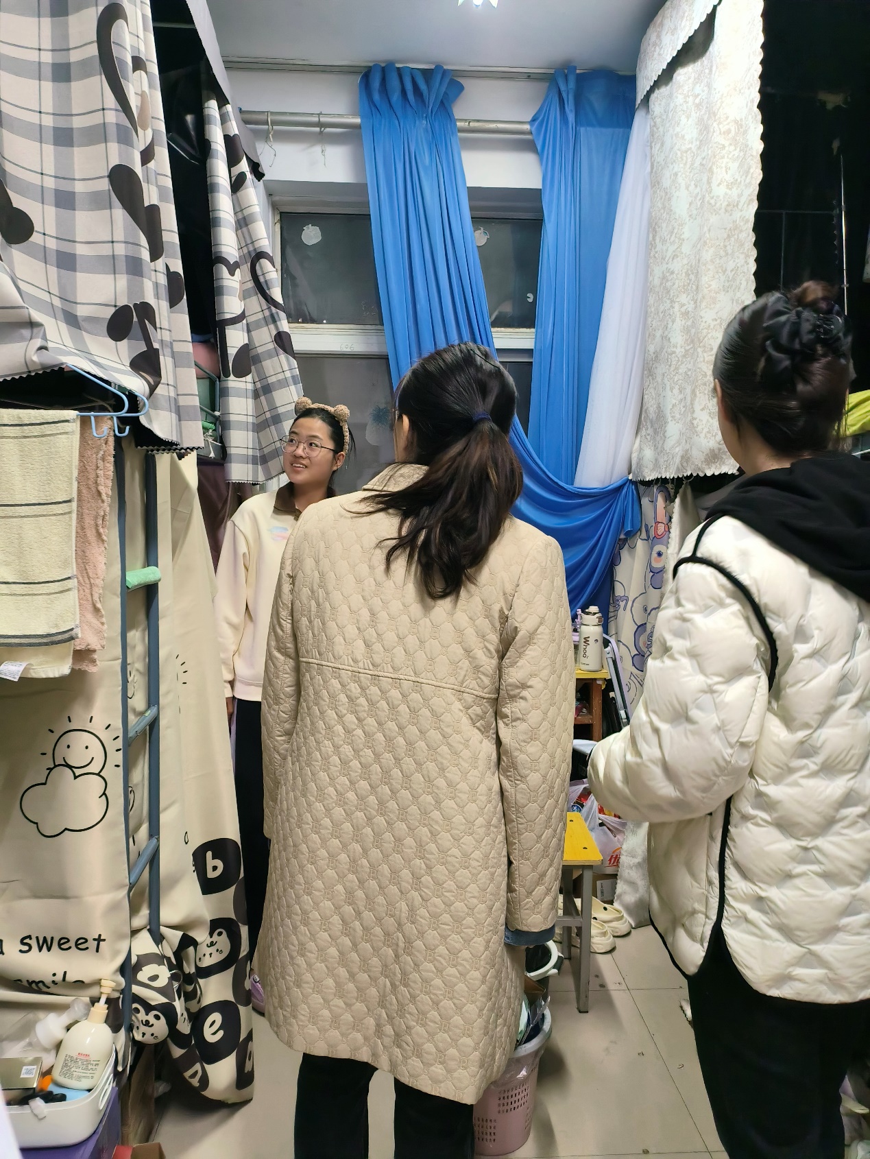 师生临时组建8支工作队,深入各组团学生寝室,以“地毯式排查+温情式服务”模式深入各学生组团。他们手持检查清单,重点开展三项核心工作:一是安全守护行动:逐间核查未归寝学生请假记录,现场演示安全用电规范,排查私接电线、违规电器等隐患,温馨提示寝室成员做到“人走断电”;二是文明共建行动:对照《一帆视频