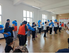 活动高潮部分,全体参与者手持象征包容与希望的蓝色绒球,在志愿者自编的“星空啦啦操”旋律中舒展肢体。不同于传统舞蹈的规范动作,志愿者们以“模仿星星眨眼”“追逐萤火虫”等充满童趣的意象引导孩子们自由舞动。当此起彼伏的绒球在阳光下划出优美弧线,当稚嫩的童声与爽朗的笑声交织共鸣,整个空间化作一片涌动着生命力的蓝色海洋。