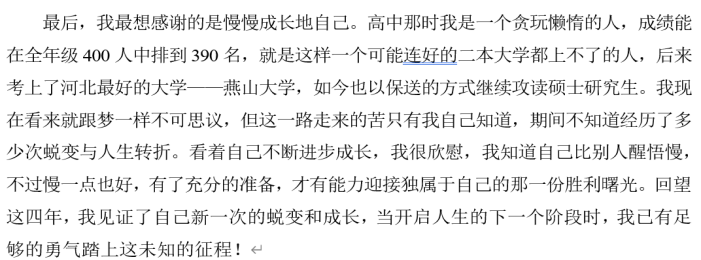 致谢的字里行间,同窗情谊如美玉般温润动人。是“陪我疯狂”的伙伴,是四年包容的温暖。熬夜实验的灯火、考研时的礼物、雨幕中同撑的伞,皆成青春珍忆。同窗们用四年的陪伴,在燕园织就了一幅名为“青春”的锦缎。