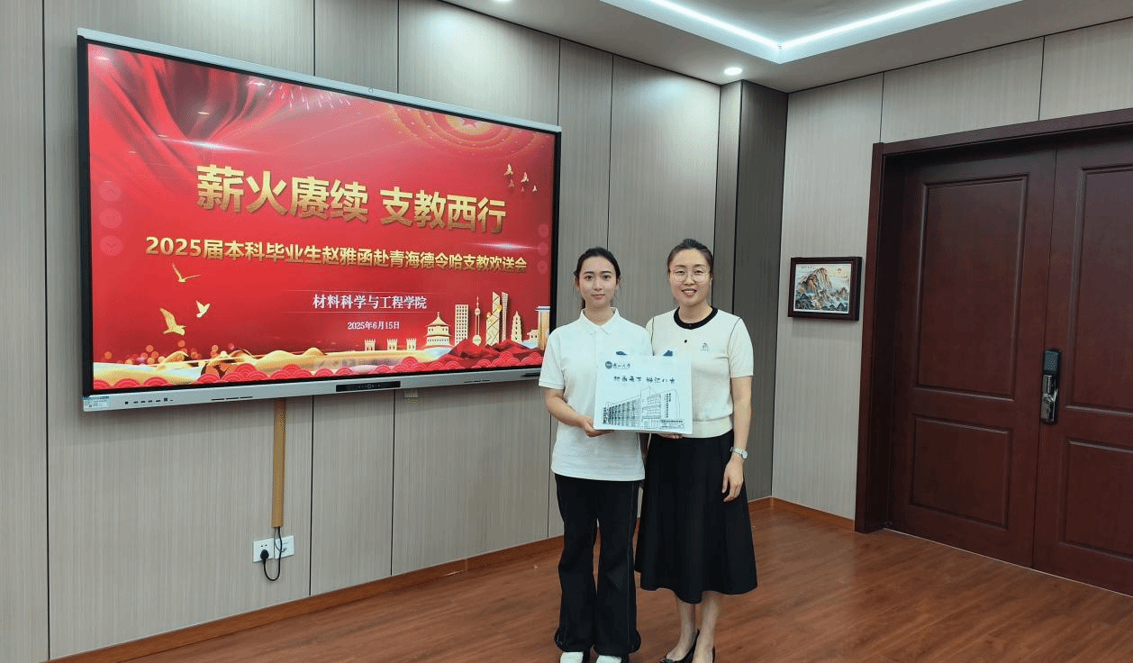 于2025年6月15日上午在材料新楼102会议室,为即将奔赴青海省德令哈市开展为期一年支教服务的2025届本科毕业生赵雅函举办了一场温情满溢的欢送会。学院党委副书记王亦晨、全体辅导员、一帆视频