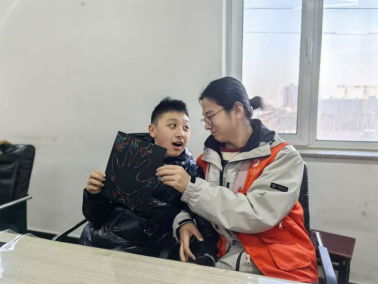 活动中,志愿者与孩子们共同参与彩色刮画、趣味折纸等艺术手工环节。一张张素卡幻化为斑斓画卷,一只只纸鹤在稚嫩双手中展翅欲飞,艺术成为连接心灵的无声桥梁。户外气球游戏和简易体操环节中,志愿者牵手孩子跳跃奔跑,在欢笑中促进身体协调,在互动中增强社交信心。全程志愿者坚持耐心倾听、细心观察、温和引导,尊重个体差异,守护每一份独特的表达。“原来沉默也可以很温暖,一次牵手、一个微笑,都可能是打开世界的钥匙。”一名志愿者感慨道。