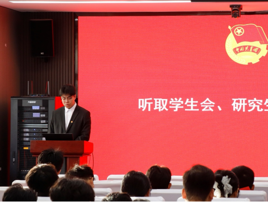 第四次学生代表大会(以下简称“学代会”)和第四次研究生代表大会(以下简称“研代会”)在里仁行政楼113会议室顺利召开。学院党委副书记王亦晨、团委书记魏东出席大会,校学生会执行主席徐章铭、校研究生会主席团成员马淑玮以及兄弟学院学生会、研究生会主席团代表应邀参会。