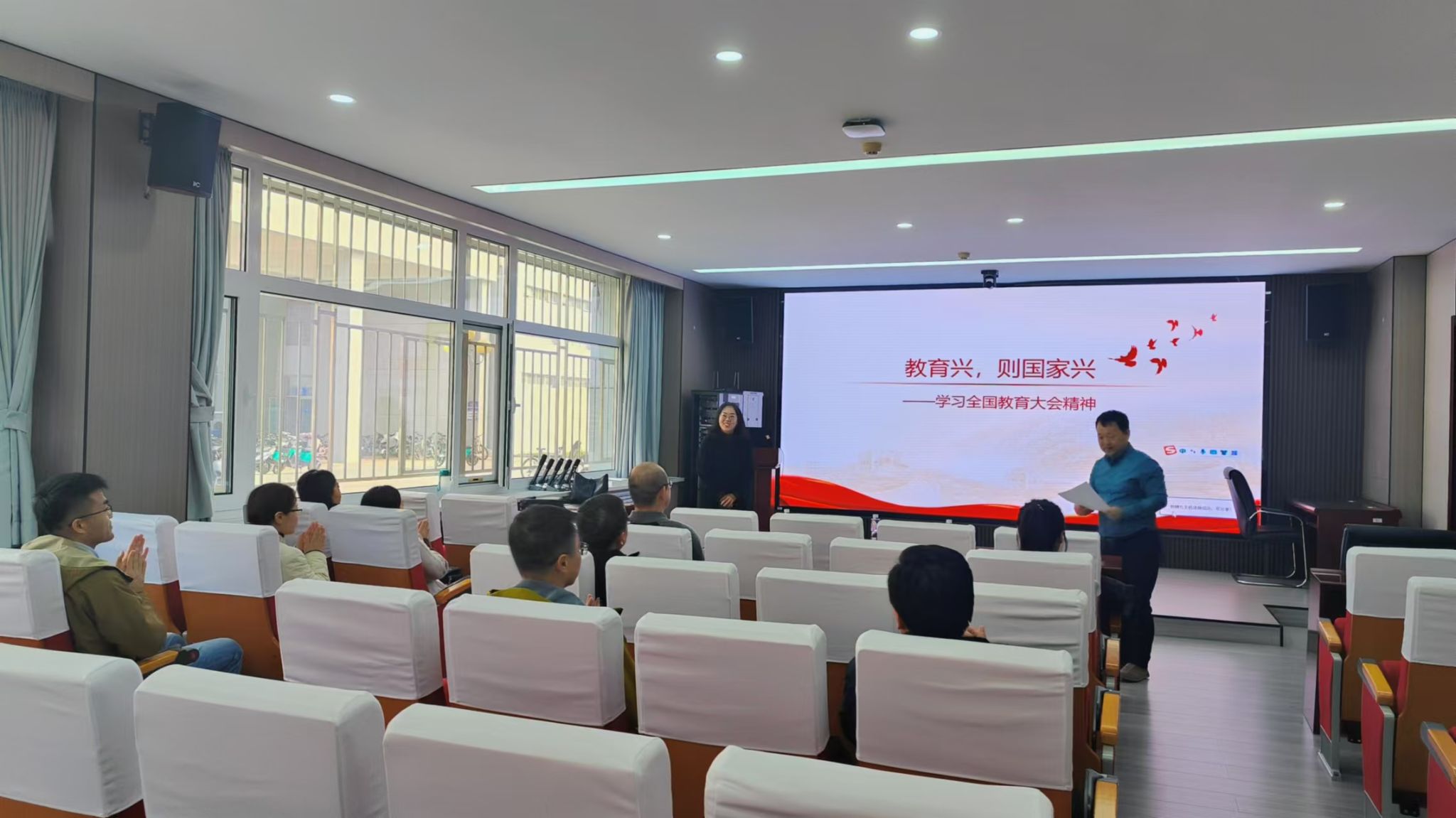 联合马克思主义学院联合举办课程思政与思政课程“双向融合”教研活动,扎实推进主题教育,2024年11月7日马克思主义学院常玉洁老师在里仁会议室113作“教育兴,则国家兴——学习全国教育大会精神”专题讲座。材料学院教学院长梁永日主持,材料学院党委书记王国伟和材料学院教师参加会议。