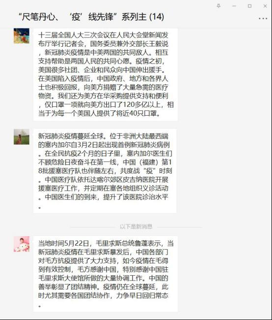 党委博士研究生第二党支部全体党员,在党支部书记赵佳莉的主持下,于2020年5月24日开展了主题为“为世界一线抗“疫”加油”的主题党日活动。