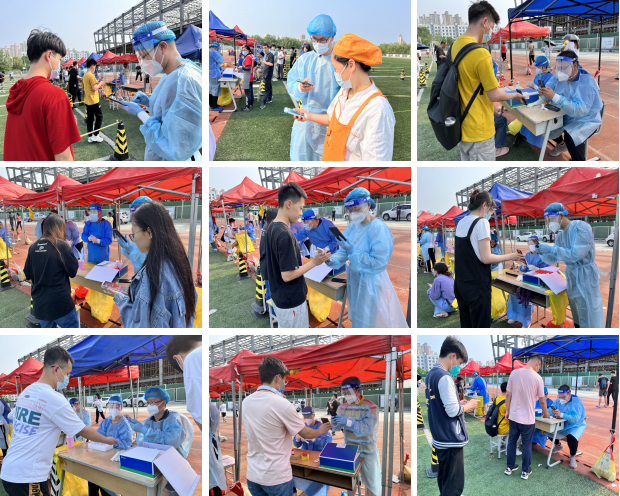 我院李英梅、付瑞东、李艺君、顾江龙、刘迪、邱海龙、许世清、薛天宇、仝柯、王锁涛、王鹏、于鹏飞、魏东13位教师积极响应学校号召,主动报名参加了6月20日学校的全员核酸检测工作,在战“疫”一线当先锋、作表率,用实际行动践行人民教师的初心使命。为保障各项工作有序、高效开展,教师志愿者们提前来到核酸检测点,根据调度安排,各司其职,分工井然有序,大家分别投入到扫码登记、流程引导、秩序维护等各项保障工作中,为疫情防控贡献力量。