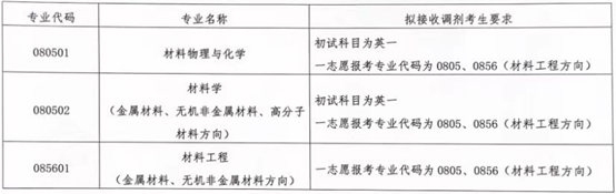 申请调剂材料学(080502)和材料工程(085601)专业的考生须选择相应的专业方向(以国家调剂系统正式发布的信息为准)。